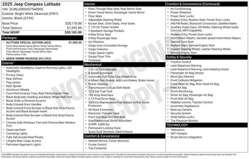 New 2025 JeepCompass LATITUDE 4X4For Sale in Mishawaka, IN