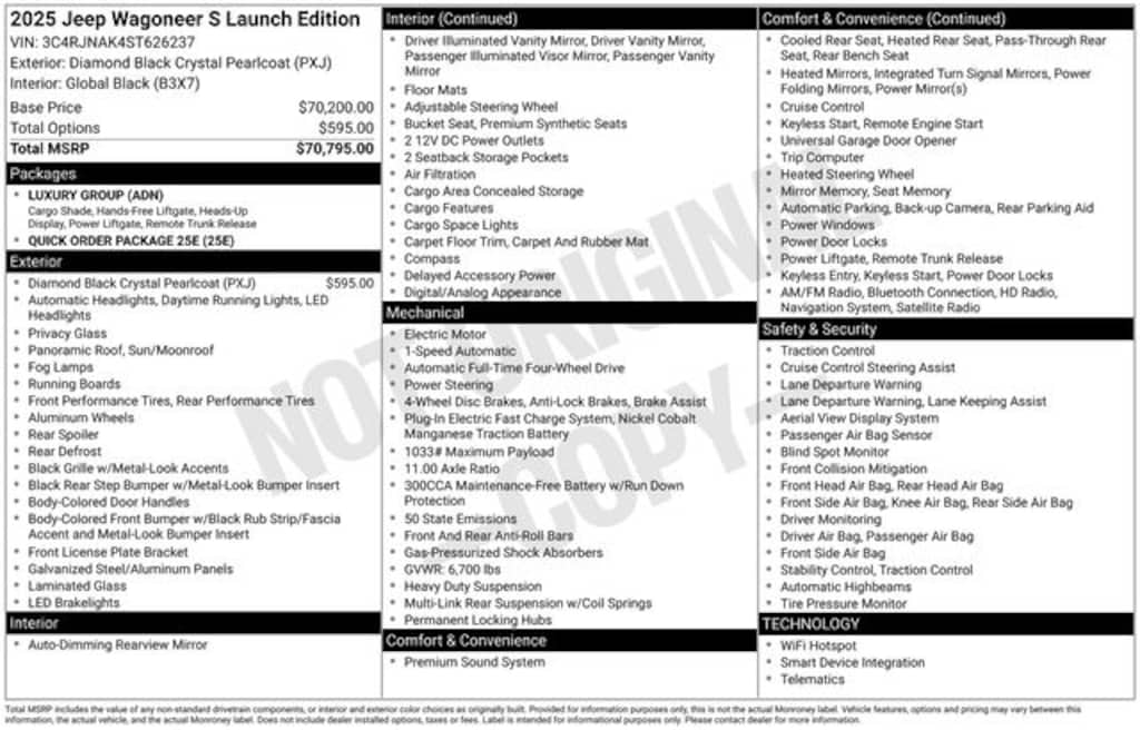 New 2025 JeepWagoneer S LAUNCH EDITIONFor Sale in Mishawaka, IN