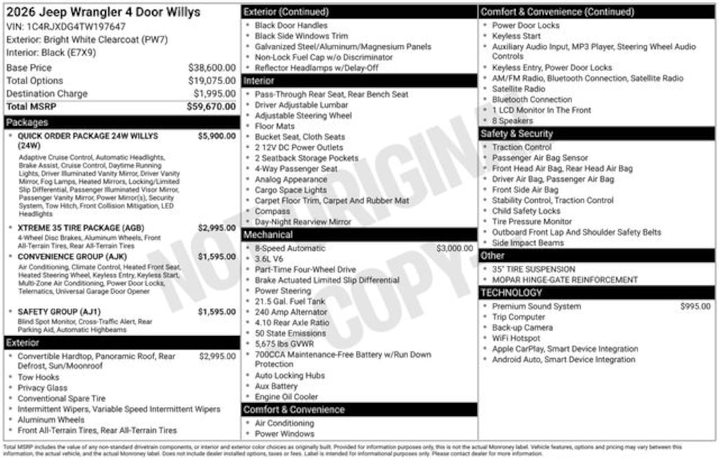 * MSRP is the Manufacturer's Suggested Retail Price (MSRP) of the vehicle. It does not include any taxes, fees or other charges. Pricing and availability may vary based on a variety of factors, including options, dealer, specials, fees, and financing qualifications. Consult your dealer for actual price and complete details. Vehicles shown may have optional equipment at additional cost.