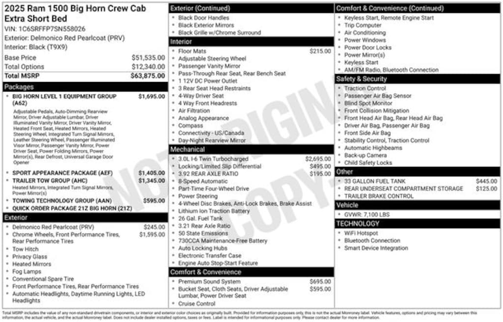 New 2025 Ram1500 BIG HORN CREW CAB 4X4 5'7 BOXFor Sale in Mishawaka, IN