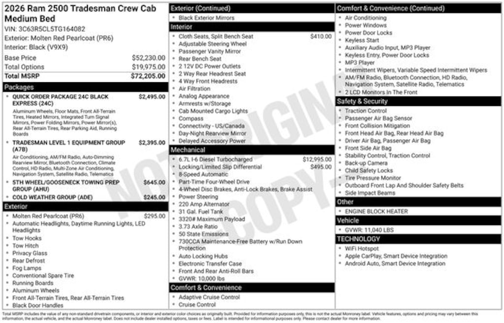 New 2026 Ram2500 BLACK EXPRESS CREW CAB 4X4 6'4 BOXFor Sale in Mishawaka, IN
